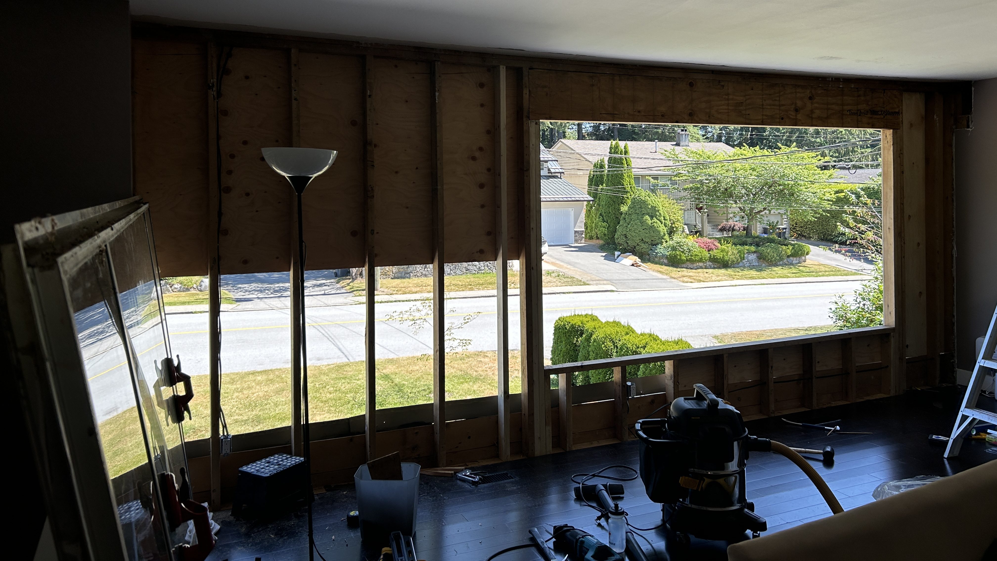 My memory of the summer we got our new windows is that each weekend we would methodically tear a wall off of a section of our house, re-frame it, and then put it back up, all before Monday morning. I’d watch heads turn and stare as people walked by, probably thinking we were crazy for tearing our house apart while we lived in it!